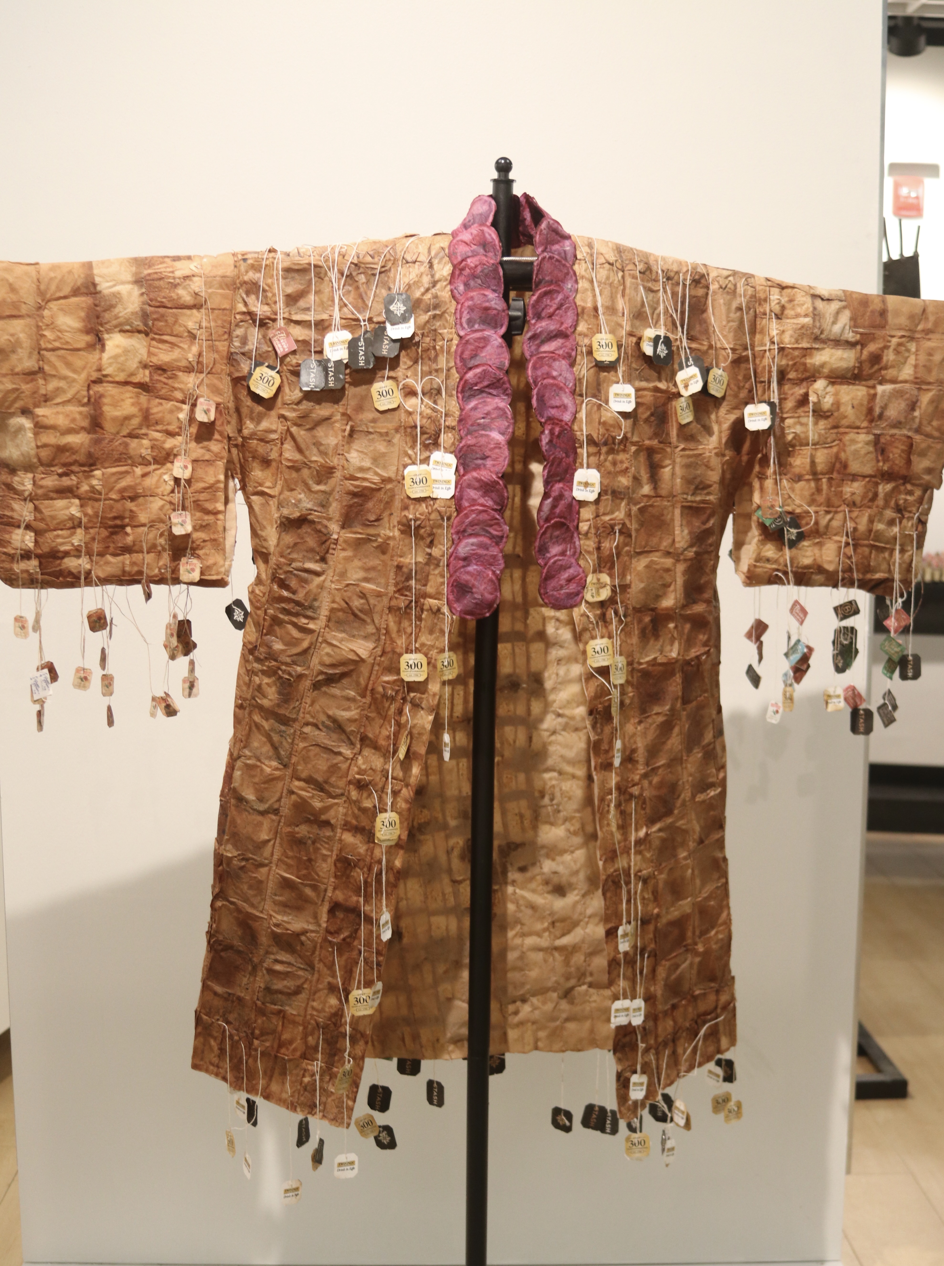 Ceramics & Sculptures 3-D work includes: ceramics, sculpture, assemblage, mixed media, and encaustic sculptures Tea Kimono Fiber Arts/ Textile Acrylic on Gallery-wrapped Canvas $1600.00 40″h X43″w X 5″d “Dotty” Acrylic on canvas covered mannequin on a Sturdy steel base $1,200 stand. 12″x12″ footprint Adjustable height 5-6′ #MeToo Mixed Media/Assemblage $2,600 31″x31″ (>60 lbs, hangs on french cleat) Corporate Weight Ceramic with glazes and acrylics $1000.00 20″long X14″wide X 7″high Your Packaging Is Breaking My Heart recycled materials $700 40″X40″ X1″d Paperboats (Collaboration with D.Cooper) Mixed Media, 3D boat sails on a blue canvas, framed in simple white. $2000 about 49″x49″x12″d Fake News Acrylic and mixed media on framed Gallery-wrapped Canvas $800.00 49.5″h X37.5″w X 3″d #45lies Mixed Media/Assemblage $2,300 49″x49″x2″ d Spread the word Click to share on Facebook (Opens in new window) Facebook Click to share on X (Opens in new window) X Click to email a link to a friend (Opens in new window) Email Click to share on Pinterest (Opens in new window) Pinterest Click to share on LinkedIn (Opens in new window) LinkedIn More Click to share on Reddit (Opens in new window) Reddit Click to share on Tumblr (Opens in new window) Tumblr Click to print (Opens in new window) Print Like Loading...