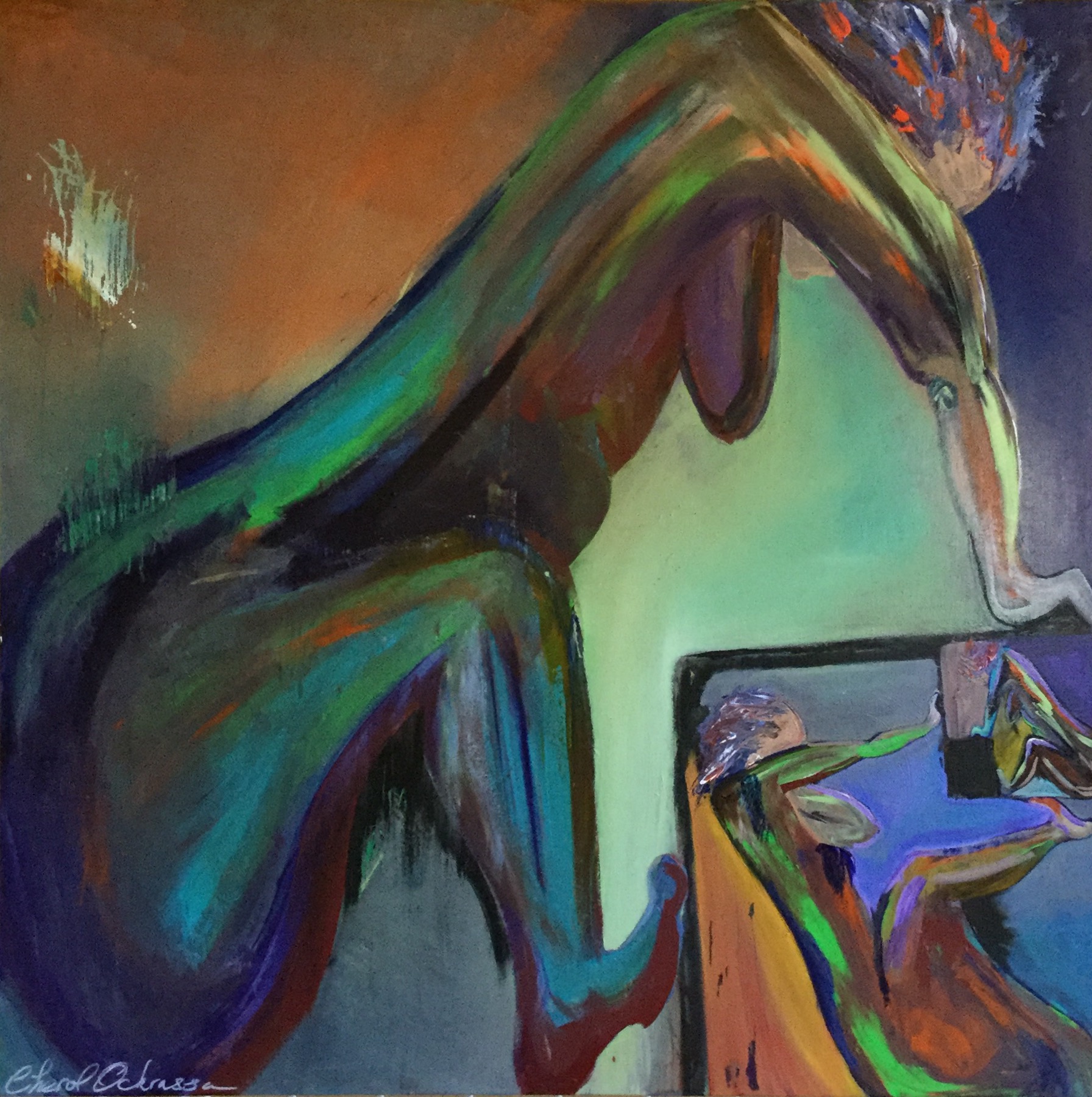 Artist creating a narrative on canvas